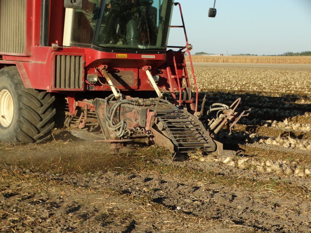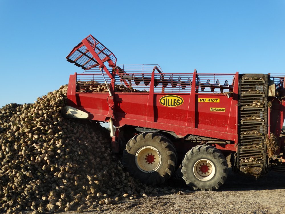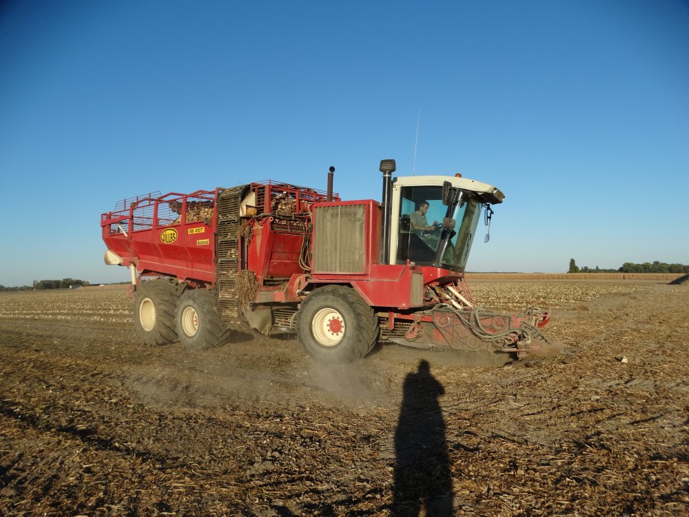 Arrachage de betteraves avec une bête rare dans mon coin. Ensemble effeuilleuse / arracheuse Gilles et débardeuse Gilles Automat RB 410T <ok>