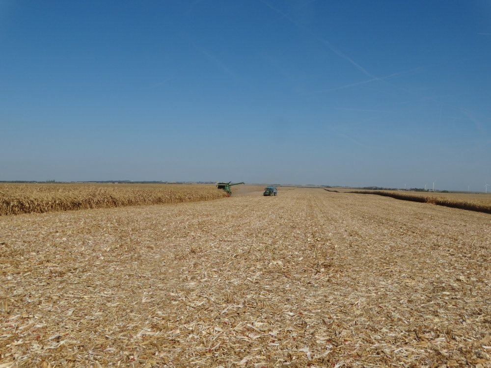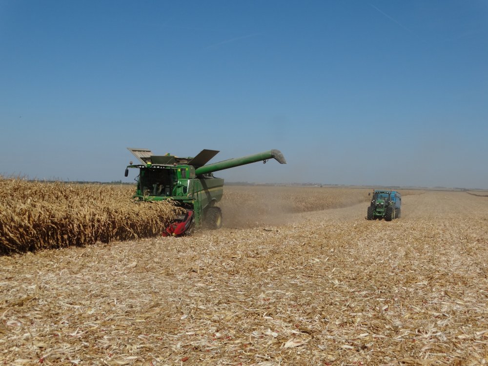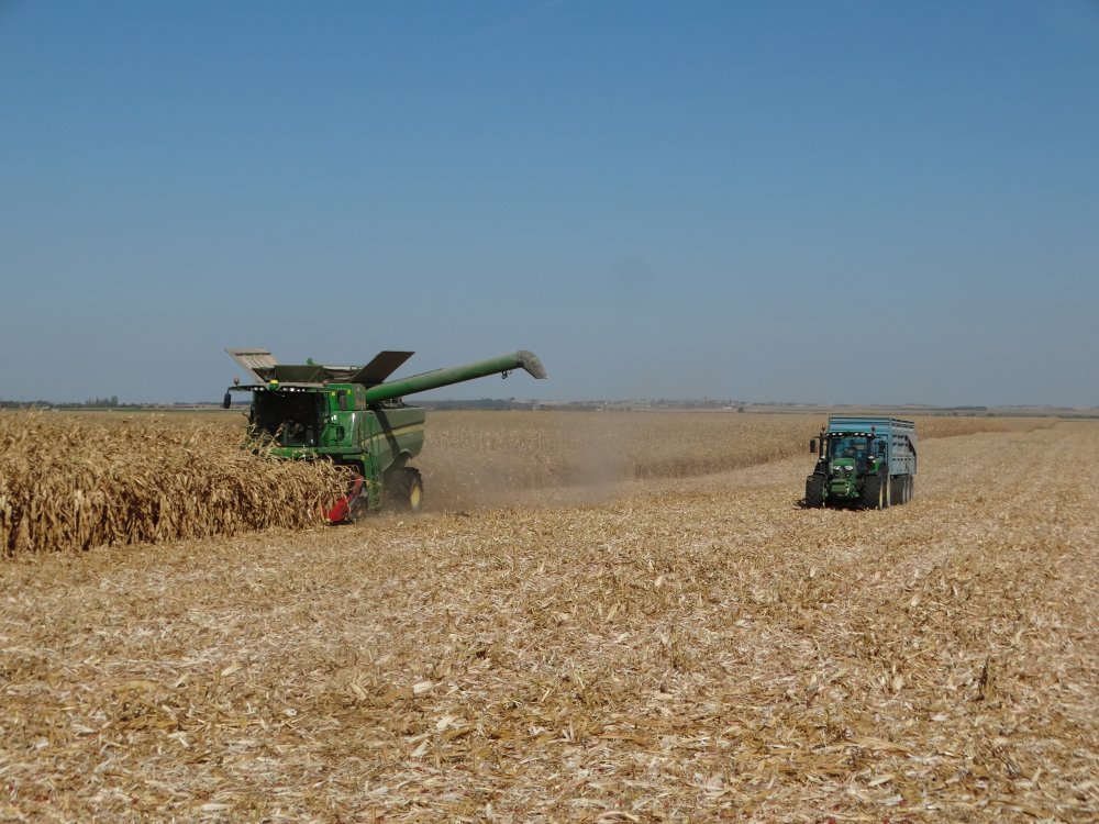 Moisson de mais à 50 à l'ETA du Lézard avec la Lexion 740 et sa coupe Capello. Pour rouler, on retrouve le Fendt 824 et la 3 essieux Maupu <ok>