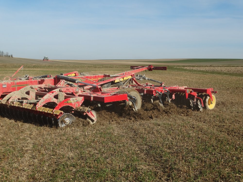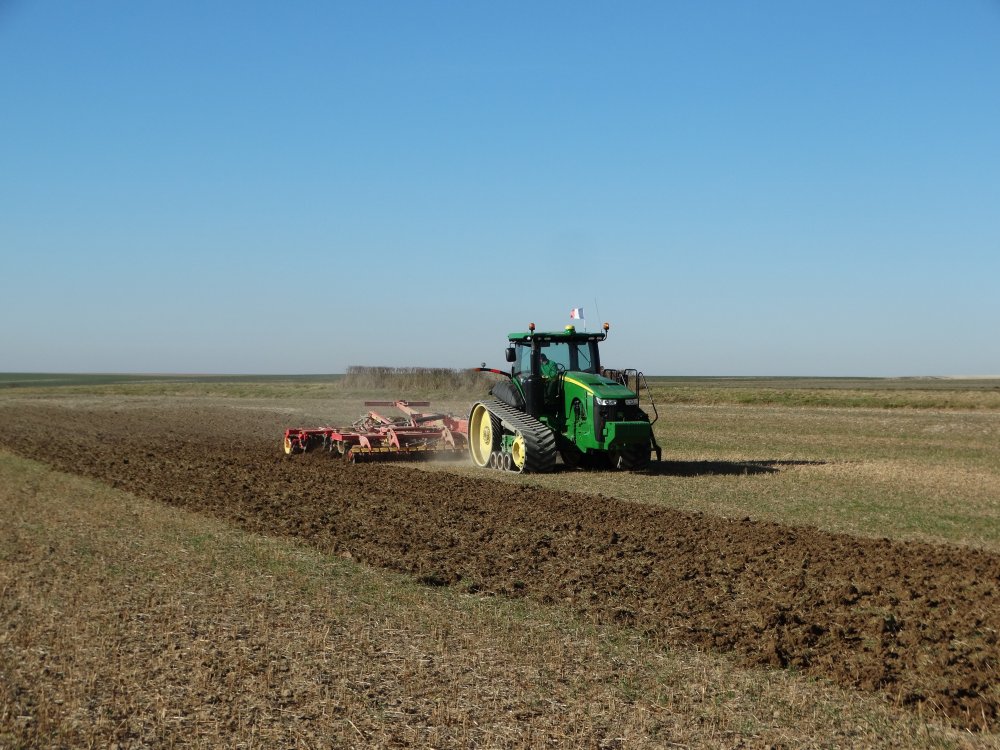La suite avec la préparation des semis d'orges prévu le lendemain. Renault 1181-4 bien chaussé avec un vibro en 6m <:L>