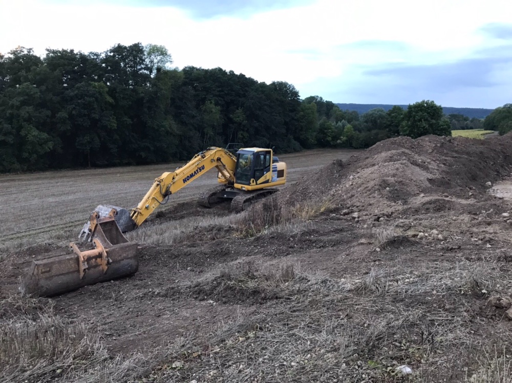Pas d’agrandissement de l’atelier taurillons pour l’instant, par contre on attaque le terrassement pour le bâtiment photovoltaïque pour ranger le matériel 😉