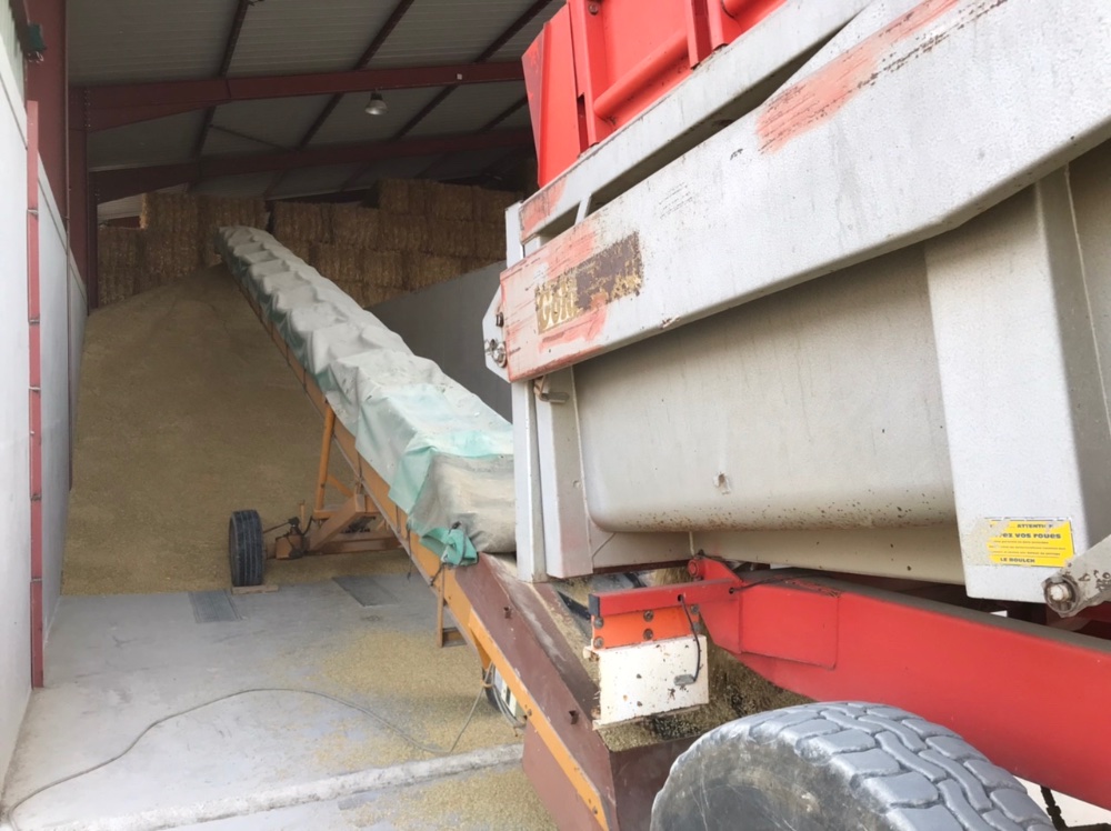 #677Pas facile à dire parce que je stocke pour les taurillons, et j’ai fait seulement 9ha sur une parcelle de 27 (le reste n’est pas complètement mur), mais ça tourne autour de 70, Variété 2 rangs fourragère Valérie.