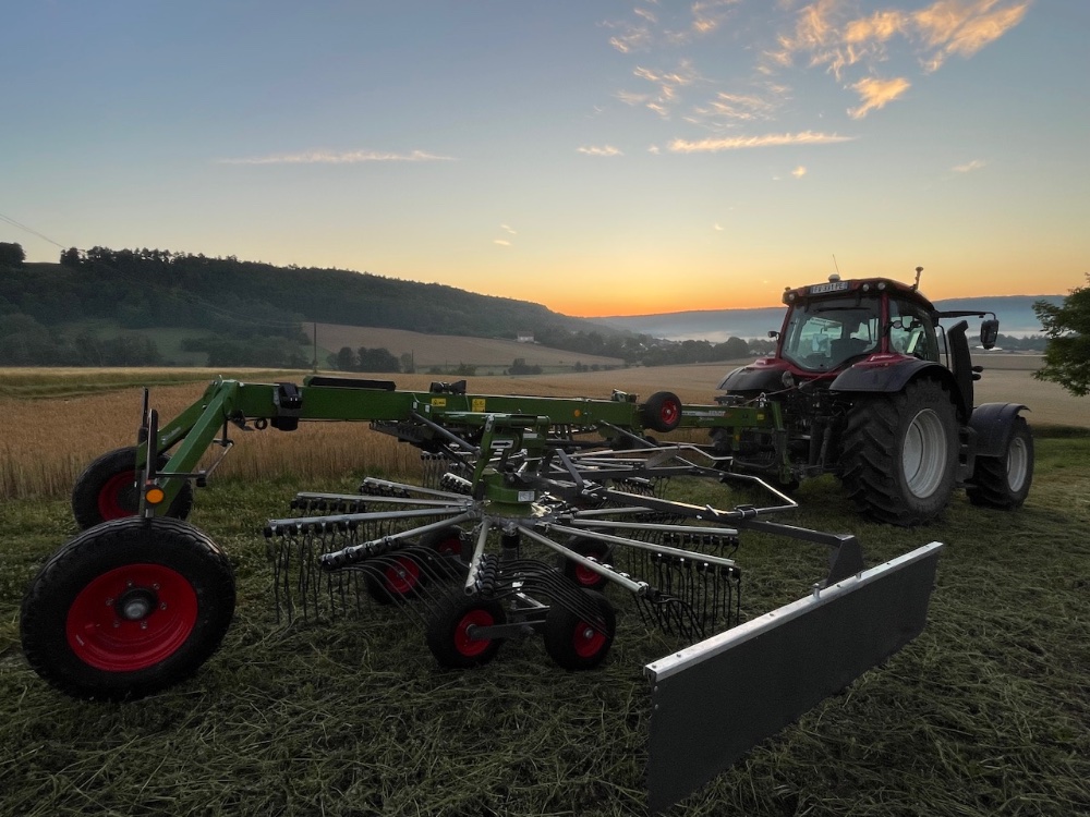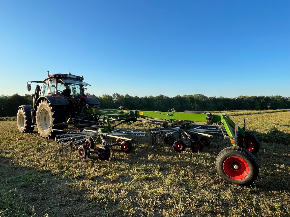 Cette semaine, début des moissons d’orge d’hiver et livraison de l’andaineur ce jour ! Prêt pour les regains !