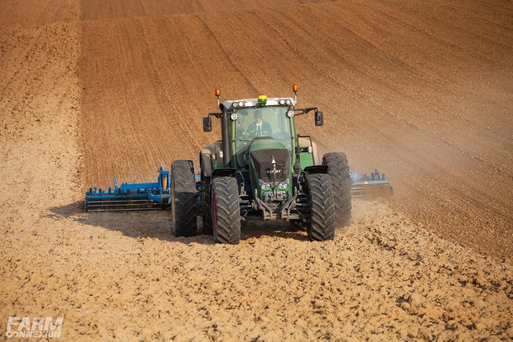 #337Un autre chantier mené par un Fendt 927 avec Kompaktor Lemken 8 mètres et un John Deere 7810 avec semoir 18 rangs Monosem