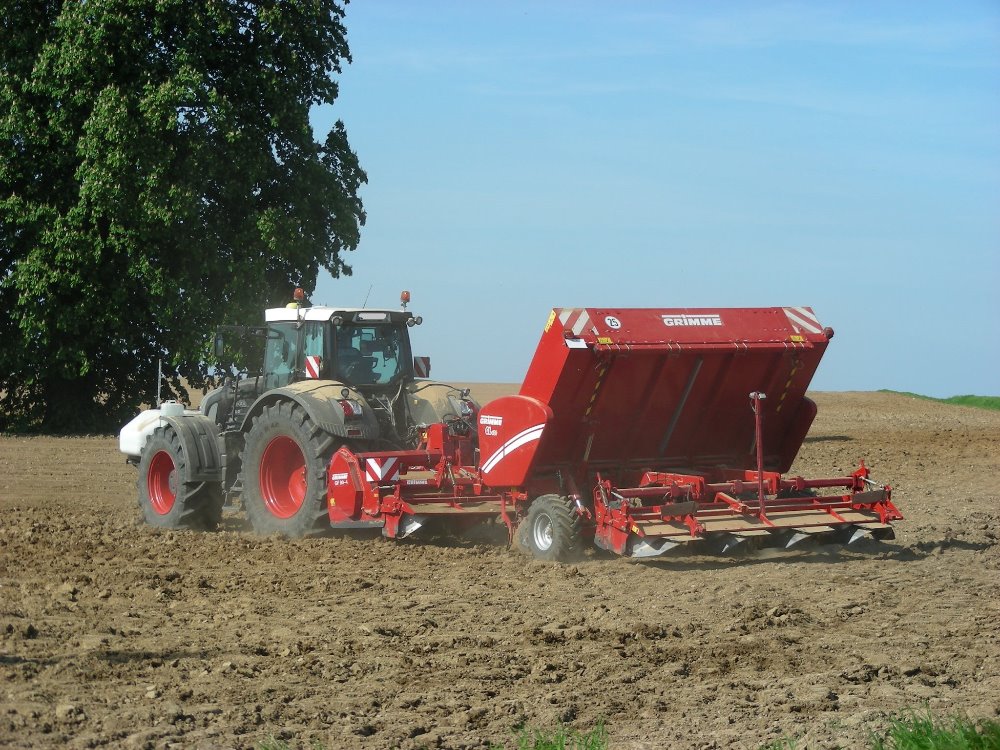 Un 927 avec le décompacteur et un 939 avec la fraise - butteuse - planteuse Grimme GF90-4 et GL430