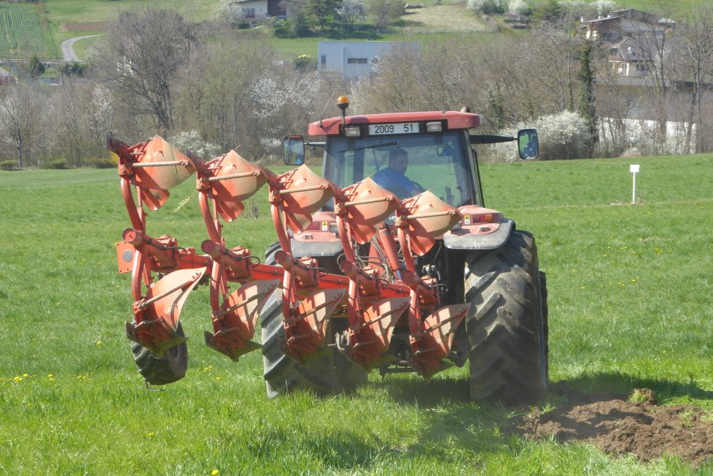 En effet, un NEW-HOLLAND G 210 trone désormais au milieu des FIATAGRI WINNER et autres. On le retrouve au labour avec une charrue KUHN VARI-MASTER 152.