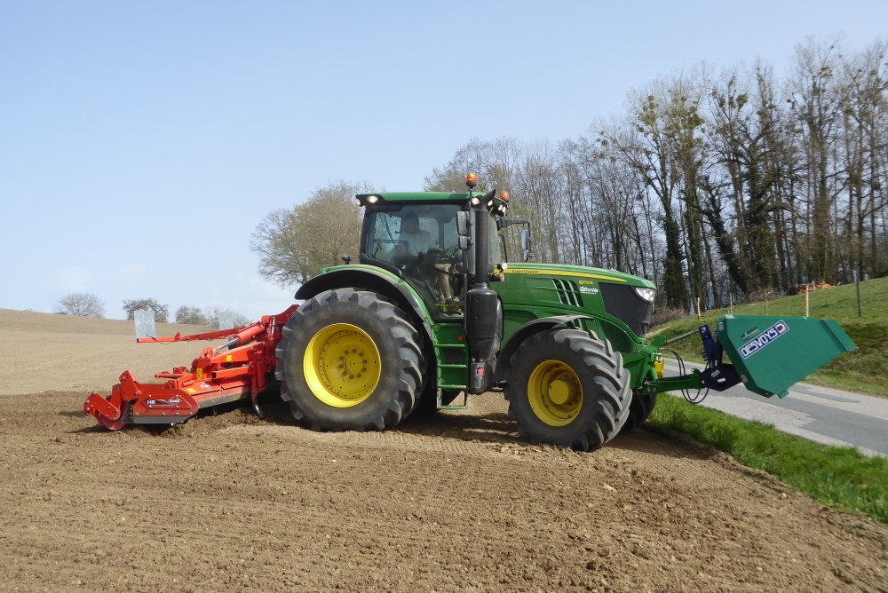 Bonjour. Hier dans une meme parcelle, un duo de JOHN DEERE. Tout d'abord, un 6175 R avec herse KUHN repliable, suivi d'un 6630 Prémium et son rouleau HE-VA.