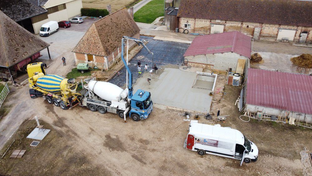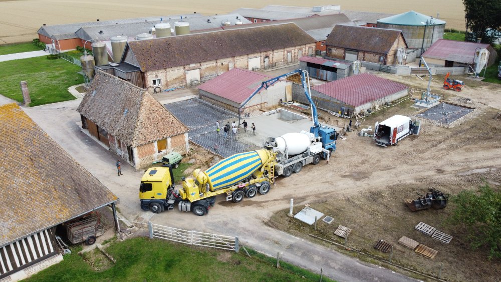 A la mi juillet c'était le coulage de la dalle de la nouvelle aire de lavage pour le matériel ainsi que l'aire de remplissage pour le lisier 5 Et entre temps les fosses a lisier ont été couvertes