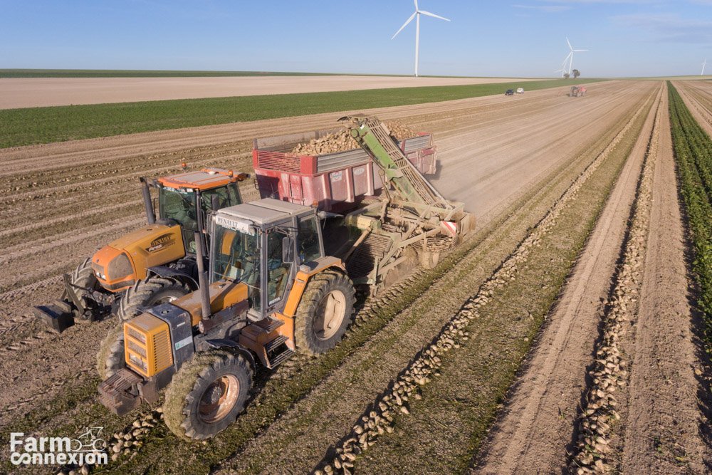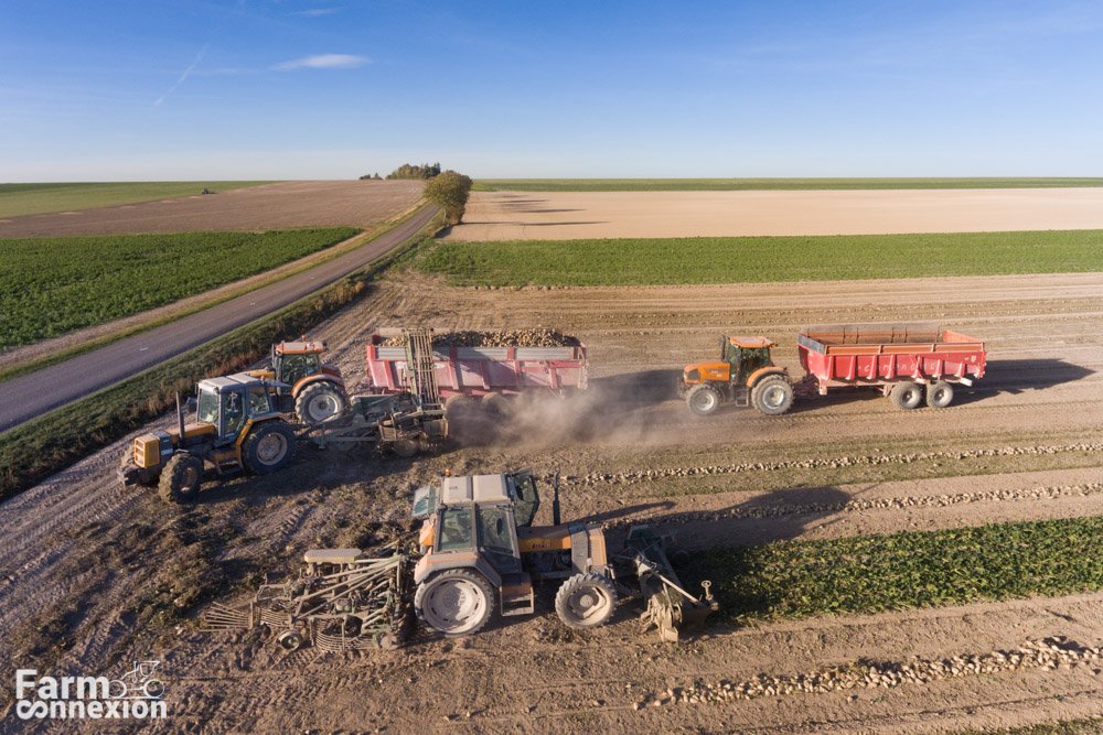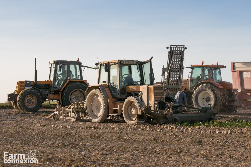 - 1 Renault 133-14 sur une effeuilleuse frontale Franquet Saïga et arracheuse aligneuse Franquet 6 rangs arrière