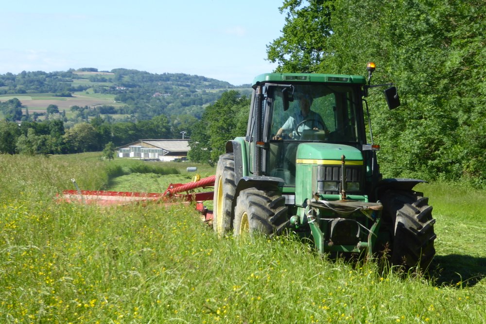 Et chaque jour, un peu d'herbe fraiche pour les vaches laitières en complément de la pâture et la ration mélangée avant d'être lâchées derrière la repousse de l'ensilage.