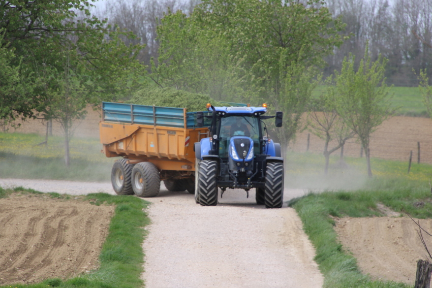 #29Bonjour. Hier après-midi sous un ciel bien gris et quelques gouttes ça et là, deux ensembles s'attelaient à rentrer une belle première coupe. FENDT 714 VARIO et andaineur KRONE , suivi d'un FENDT 720 VARIO avec autochargeuse FENDT TIGO.