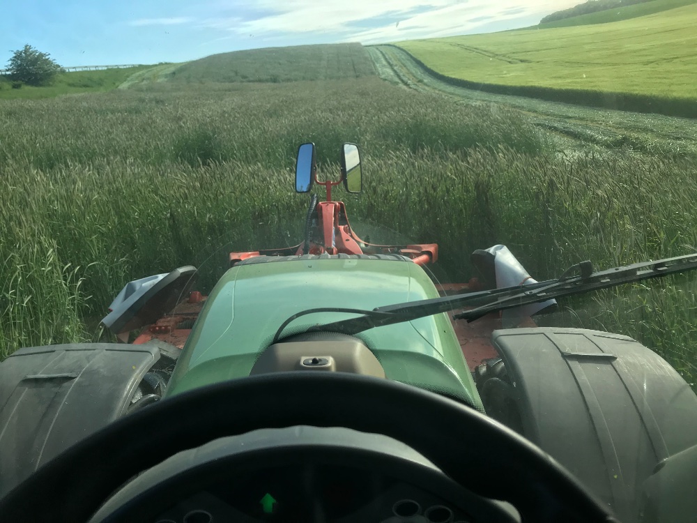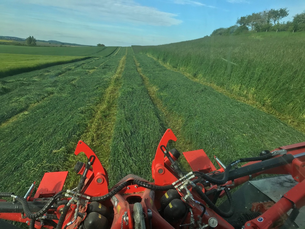 #28Hier et vendredi c’était fauche de trèfle violet, méteil seigle / pois fourrager et prairie pour ensilage avec mise en route du nouveau groupe de fauche.
