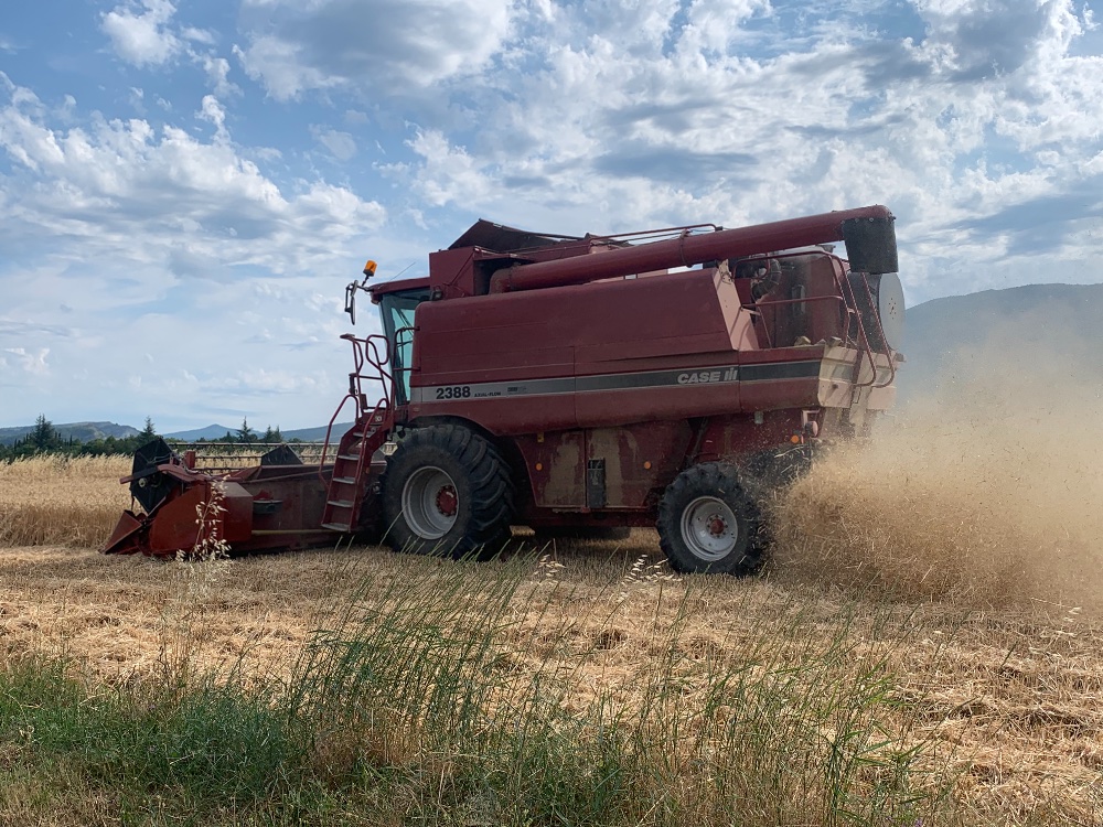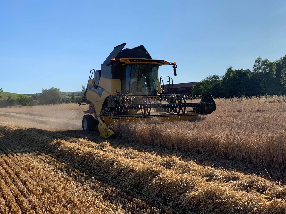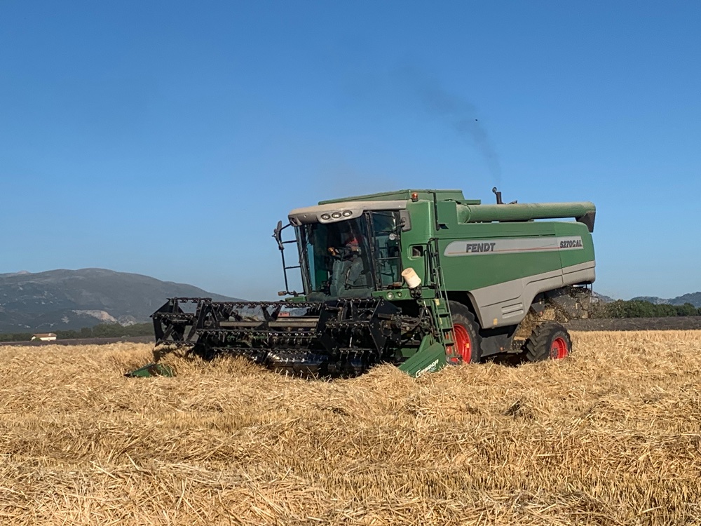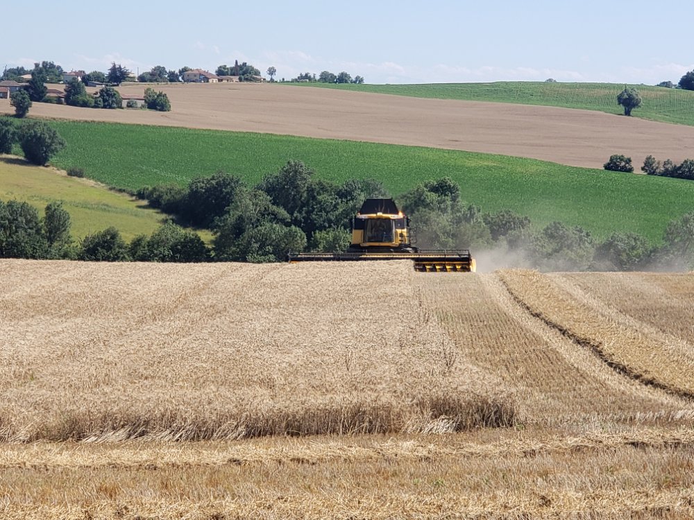 Début des moissons timidement hier après-midi dans le secteur de Bure, IH 7230 et deux 1455 se sont occupés du transport tandis qu'une des 3 batteuses (IH 2388) de l'exploitation battait