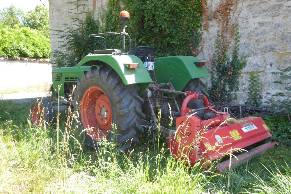 Bonjour. Nettoyage des abords de champs avec ce DEUTZ D 5506 en excellent état avec broyeur DEL MORINO.