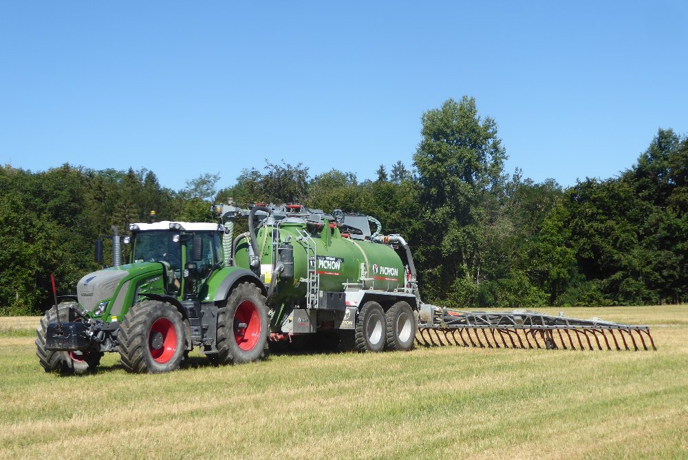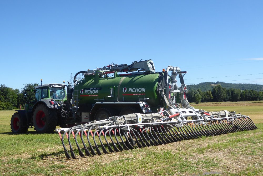#27Bonjour. Aujourd'hui, un bel ensemble à l'épandage de boues de coopérative laitière. Pour cela, un FENDT 939 VARIO attelé à une tonne PICHON 17000 L.