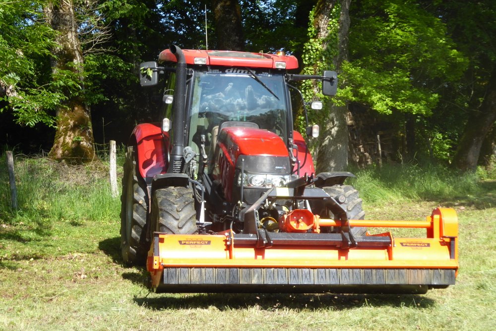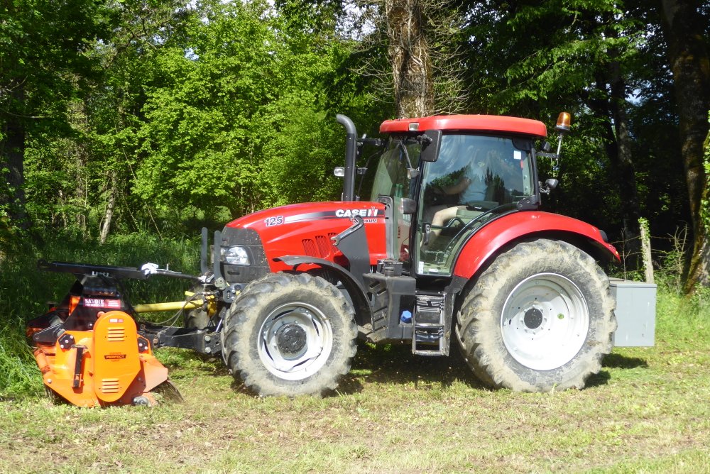 Hier en fin d'après-midi, broyage en tout genre. Case MAXXUM 125 avec gyrobroyeur PERFECT et camion-broyeur pour le bois , déchiqueté en plaquettes , destinées aux chaudières à bois.