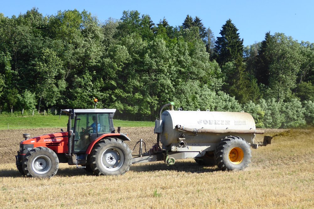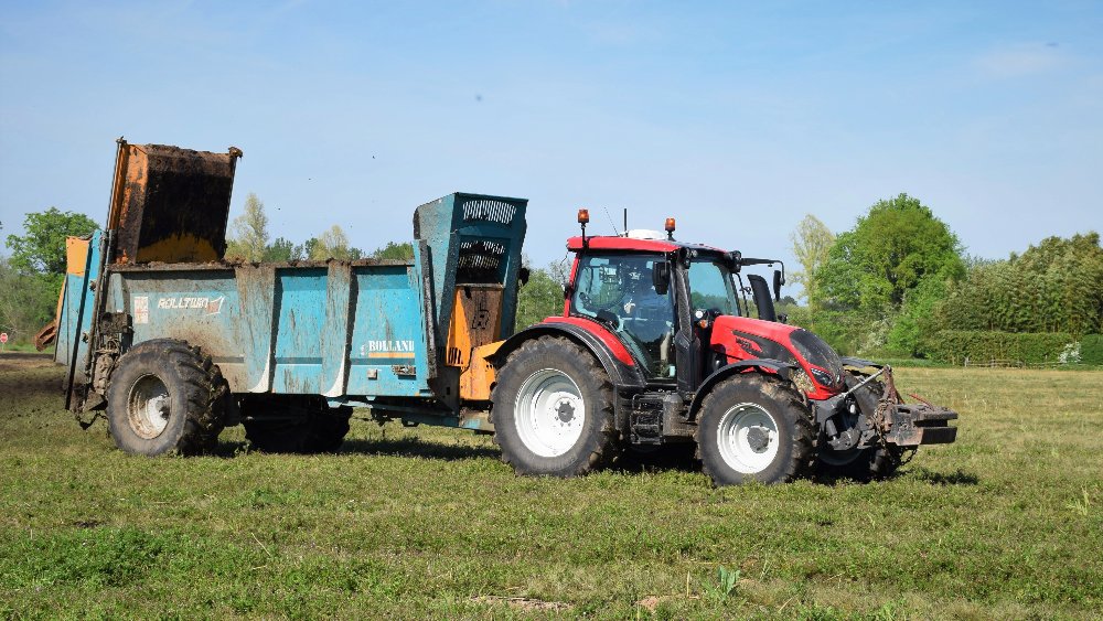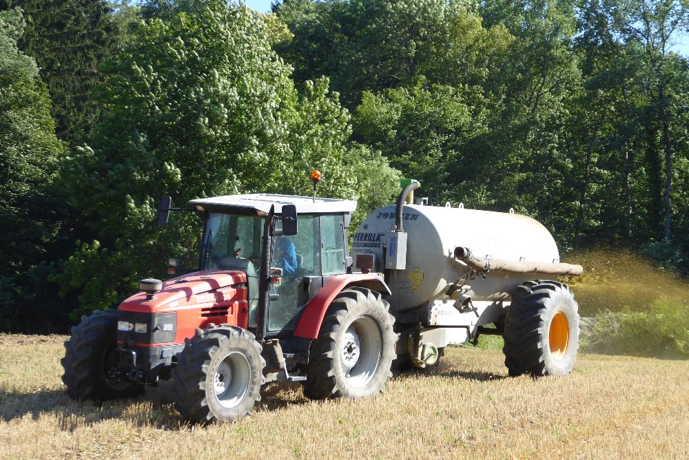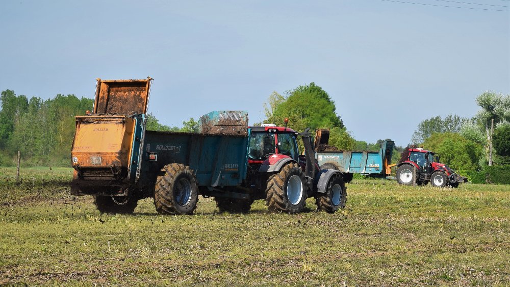 Retour il ya quelques semaines lors de l'épandage de lisier, juste avant les semis de maïs, avec un team New Holland & Pichon. Au travail un T5050 sur broyeur à lisier, le TM165 sur une tonne 12.500L, et le T7050 sur la 15.700L :