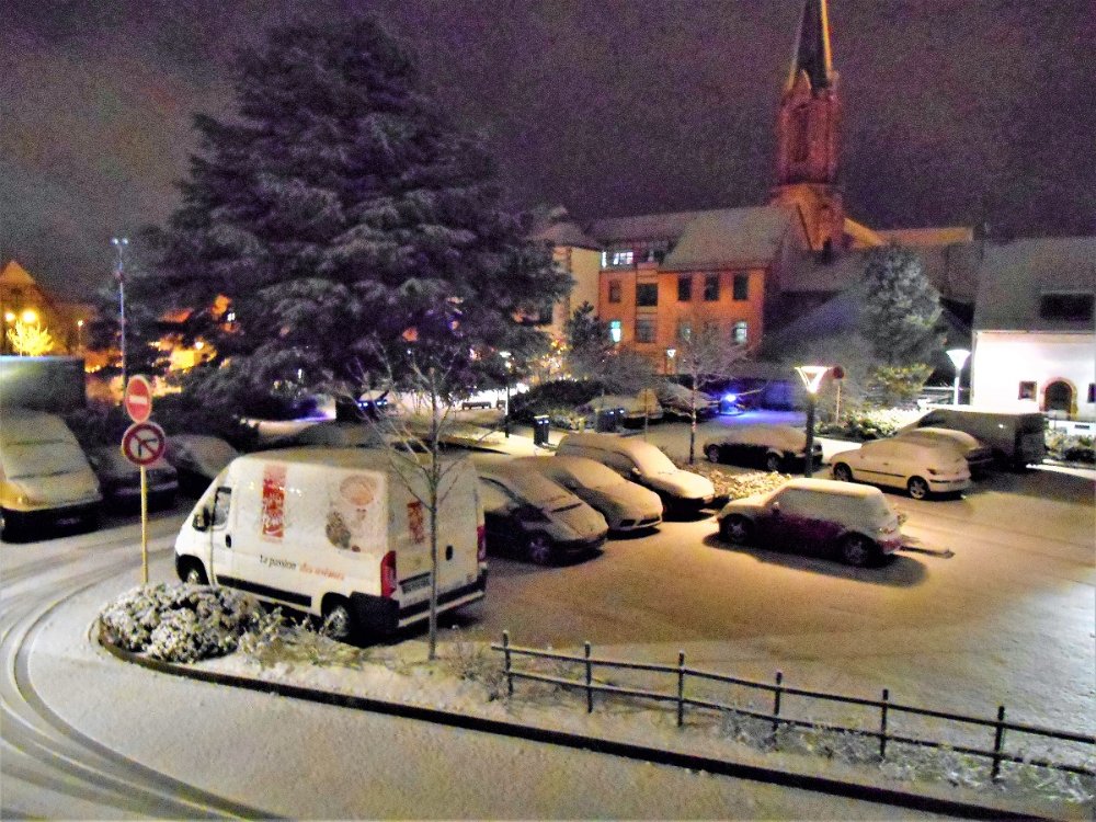 #6Ici la météo annonçait du gel et quelque flocons hier soir, aucune vigilance orange, résultat ce matin : 9 centimètres de neige en plus.. Tombés sur la neige de la veille... un beau tapis blanc.