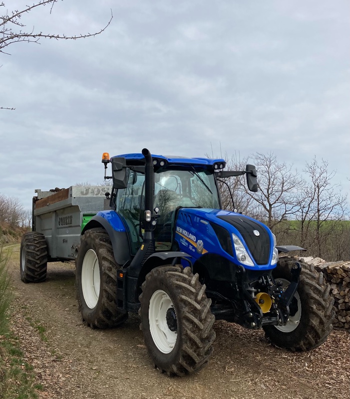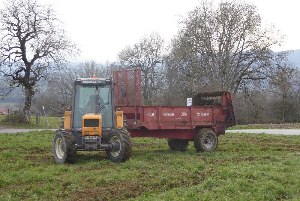 Voici un RENAULT 90-34 TRACFOR et un épandeur MIRO / HEYWANG MISTRAL.