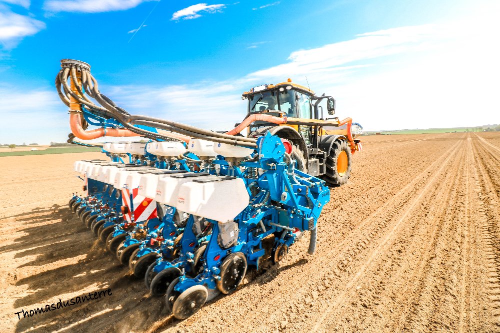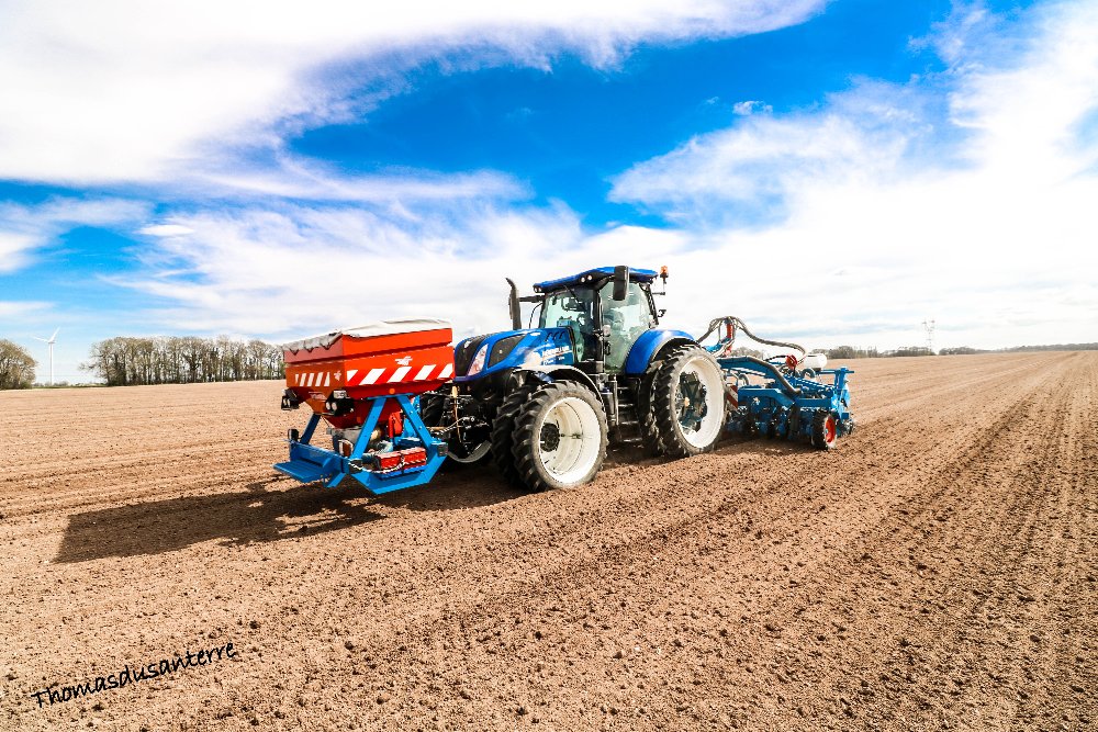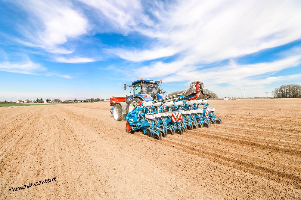 New holland T7.270 , avec une trémie frontal Monosem et un semoir Monosem 12 rangs pneumatique.