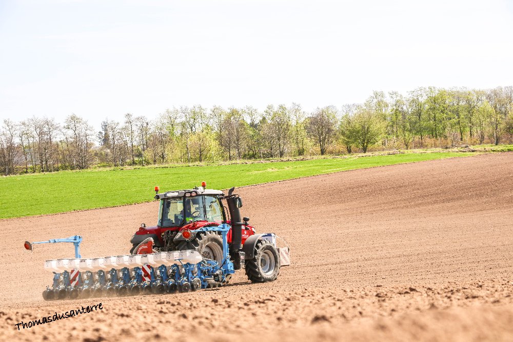 Massey Fergusson 7716 avec un semoir monosem 12 rangs pneumatique
