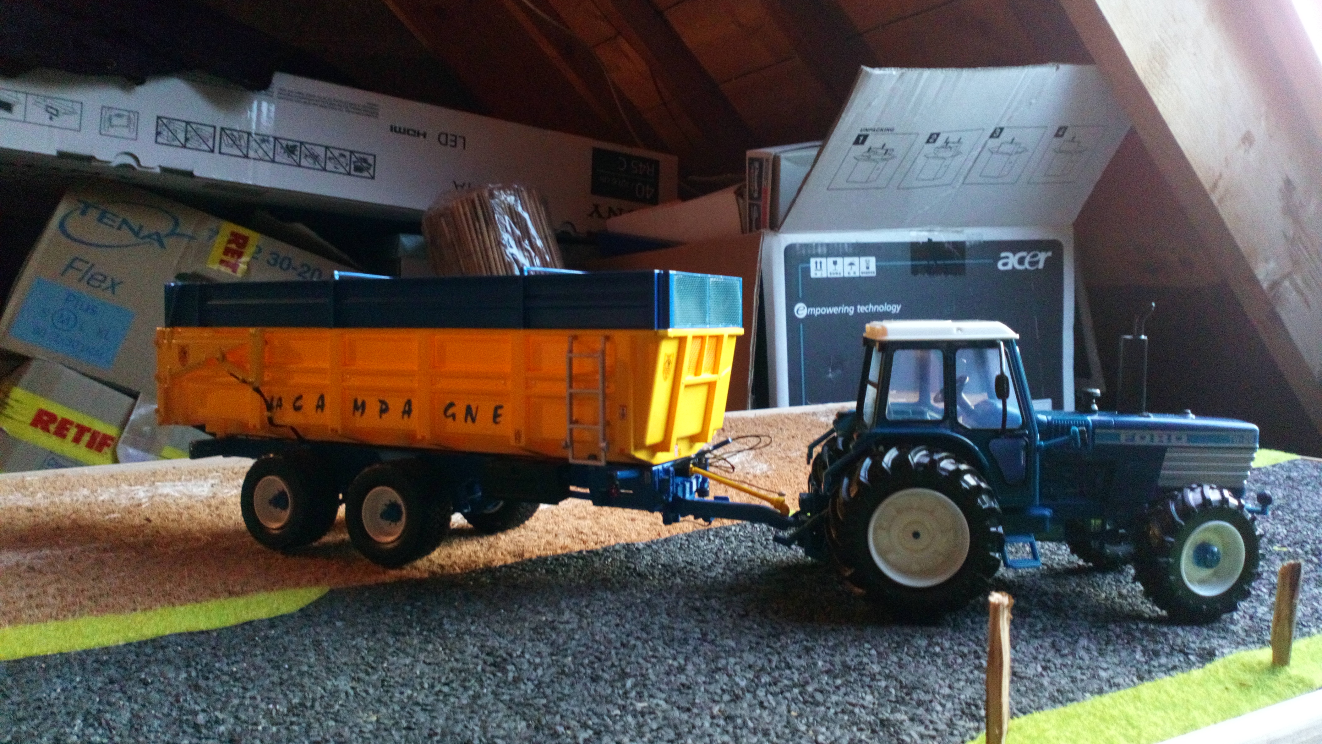 Voilà le Ford TW25 récupéré chez Stockomani, tirant une remorque La Campagne aux couleurs NH.