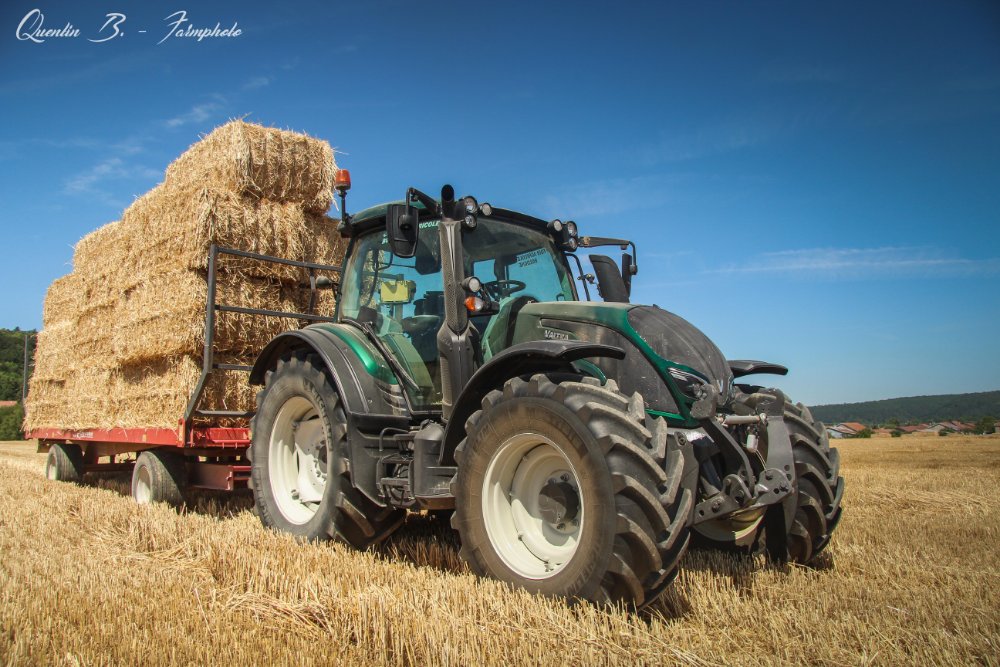À la paille en ce moment ! 1400 bottes cette année, dont 850 balles rondes avec la Krone, et 550 balles carrées pressées en entraide par 2 exploitations voisines