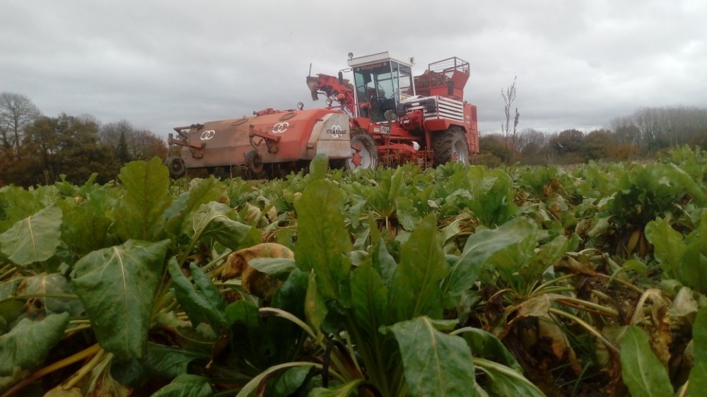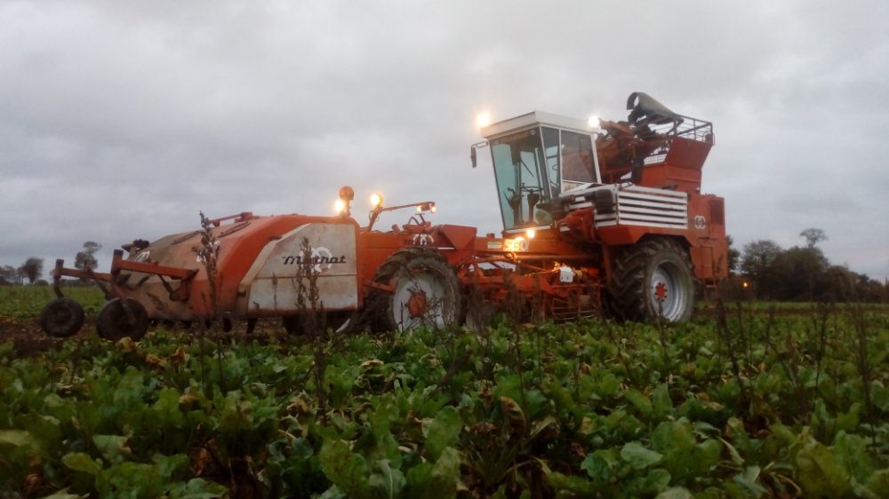 Grimme Rexor X4, Fendt 824 et Maupu à fond poussant, JD 7530 et benne Maupu
