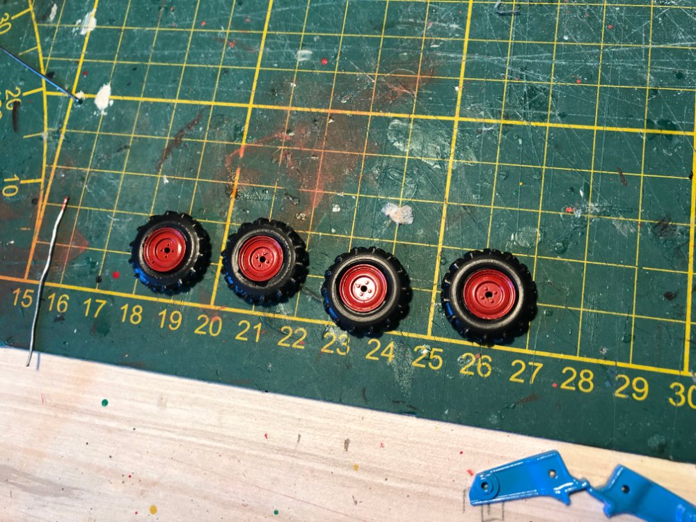 On commence par désosser chacun de notre côté nos bases, puis on démonte les éléments, les traceurs... et on atteint le bâti. Celui de base nous plaisant pas et étant abîmé, on refait chacun des bâtis se rapprochant de la réalité. On coupe le bâti d'origine, on meule tout ça pour que le tout soit lisse. Ensuite vient l'étape de coller les nouveaux bâtis. Adrien récupère mon semoir, il s'occupe du sablage et de la peinture sur les semoirs, de son côté il apporte des modifications à son semoir (qui ne sont pas toutes faites sur le mien). Il fabrique la turbine s'approchant le plus à la réalité par l'imprimante 3D et il obtient le rendu le meilleur possible car celle de base ne lui plaisait pas, changement des roues et jantes car celles d'origine ne nous plaisait pas. Après avoir essayer 20 mélanges de peintures, il se trouve avec une teinte ressemblant à celle d'origine sur le semoir UH.