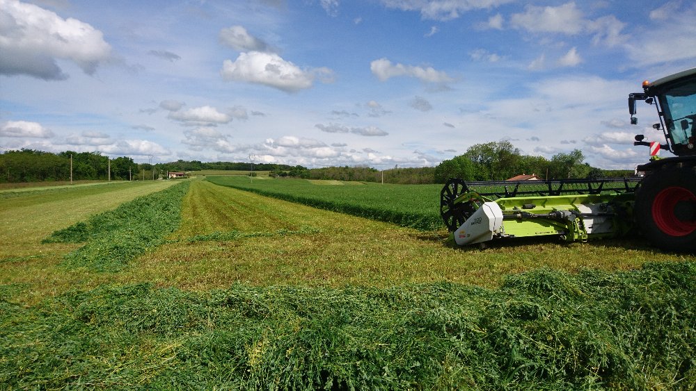 donc Xerion 3800 + maxflo 900 depose latérale dans des petits ray-grass, puis jolie luzerne et aussi dans du trèfle en fin de journée.