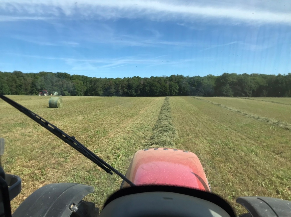 Au programme, fin des orges d’hiver, bilan autour de 73q/ha. Puis pois de printemps, la cata, 26q… Aujourd’hui enrubannage de 17ha de 2nde coupe de luzerne