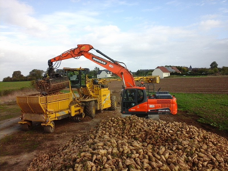 Le soc a ses aficionados également, pour son guidage en cas de dévers prononcé, pour sa simplicité de réglage, et....dans notre cas....pour sa combinaison avec l’effeuilleuse Multi, qui, aidée des battes en caoutchouc positionnées sur le rang, va débarrasser là betteraves de toutes les éventuelles feuilles mortes ou malades....