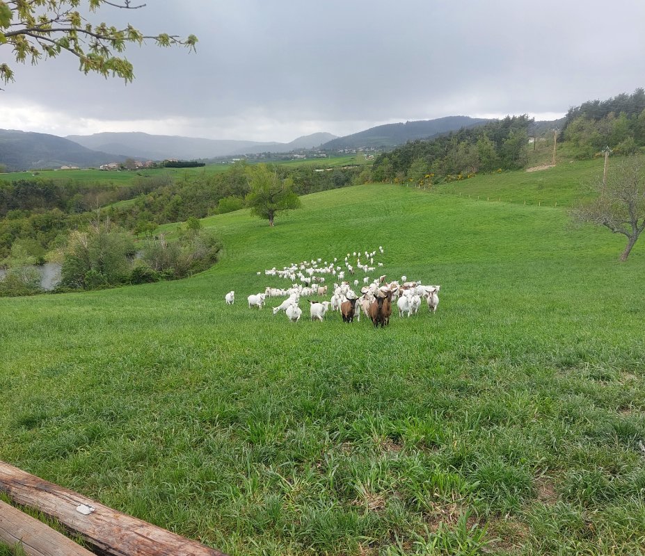 les vaches et le chèvres en pâture par se beau temps