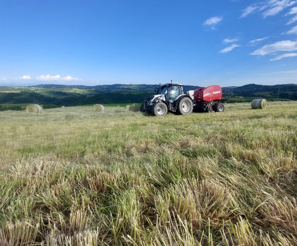 pressage ces pas le Valtra qui si colle il était occuper a faucher chez un collègue un trentaines ha pour ensiler ducoup il nous prête son tracteur